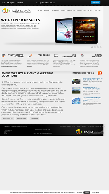 100%xtmotion london provides leading web strategy & planning, web design, web development, digital marketing (online marketing) and web support services, that are focused, tailored and cost-effective to suite your needs and budget.
