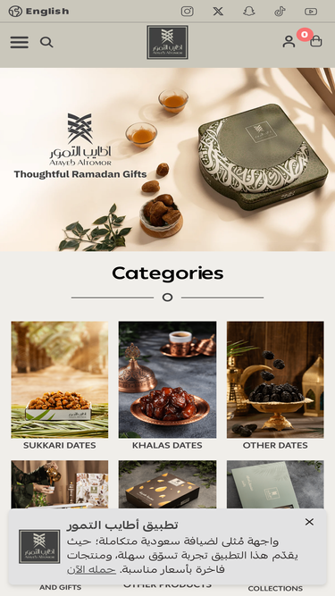 86%تمتع بأفضل تجربة تسوق من متجر ديار العسل و التمور افضل و الذ تمور داخل المملكة العربية السعودية جميع منتجاتنا خاضعة لمواصفات الجودة نوفر لك افضل سعر و افضل جودة تمور داخل السعودية لدينا جميع انواع التمور و العسل و المعمول و الكليجا و العجوة و الدبس و الطحينة. تسوق تجد ما يسرك من عروض و بكجات المحل.
