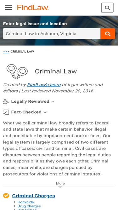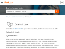 58%welcome to findlaw's criminal law center. here you will find definitions for dozens of common crimes, an overview of stages in a typical criminal case, tips on your