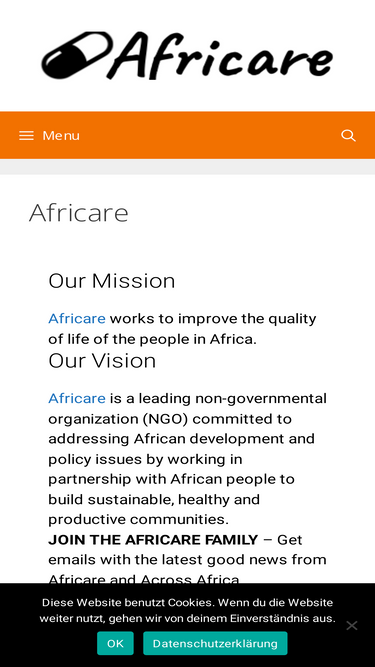 Our Mission Africare works to improve the quality of life of the people in Africa. Our Vision Africare is a leading non-governmental organization (NGO) committed to addressing African development and policy issues by working in partnership with African people to build sustainable, healthy and productive communities.JOIN THE AFRICARE FAMILY – Get emails with the latest good news from ... Read more