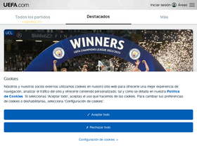 93%UEFA.com es la web oficial de la UEFA, la Union of European Football Associations, el máximo organismo del fútbol europeo. La UEFA trabaja para promocionar, proteger y desarrollar el fútbol europeo a lo largo de sus 55 federaciones miembro, organizando también algunas de las más famosas competiciones de clubes del mundo, como la UEFA Champions League, la UEFA Women’s Champions League, la UEFA Europa League, la UEFA EURO y mucho más. En la web aparecen las últimas noticias del fútbol europeo, los goles, un amplio archivo de vídeo y estadísticas, una visión desde dentro de cómo trabaja la organización, incluyendo información sobre el juego limpio financiero, cómo la UEFA apoya el fútbol base y el programa de financiación HatTrick de la UEFA.
