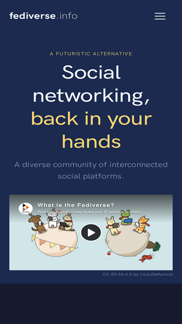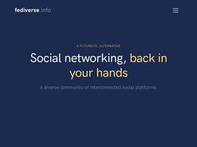 93%Let's make social media free, federated and fun! Fediverse.Party is your guide into the world of decentralized, autonomous networks running on free open software on a myriad of servers across the world. No ads and no algorithms. Join Fediverse and become part of the new interconnected Web!