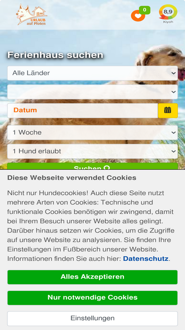 98%viele hunde-ferienhäuser & ferienwohnungen, deutschland & eu-weit. regionen-tipps für ferienhaus-urlaub mit hund, auch eingezäunt, meer & berge