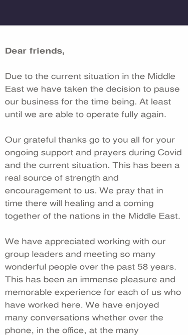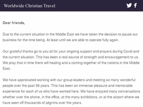 78%due to the situation in the middle east, worldwide christian travel are pausing operation