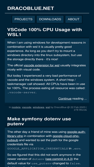 dracoblue's development diary and blog. it contains articles about the languages java, php, lua, pawn and javascript.