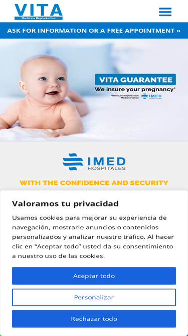 95%Los centros VITA Medicina Reproductiva, en Elche y Benidorm, están especializados en tratamientos de fertilidad y reproducción asistida.
