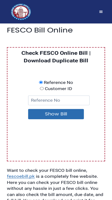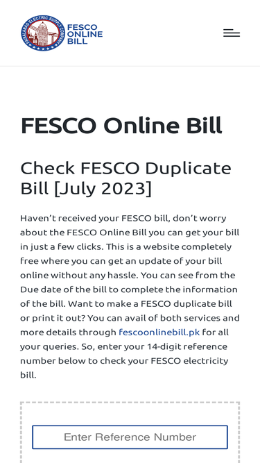 Check FESCO bill online at fescobills.pk. This is free website where you can generate fesco duplicate bill and print or download it.