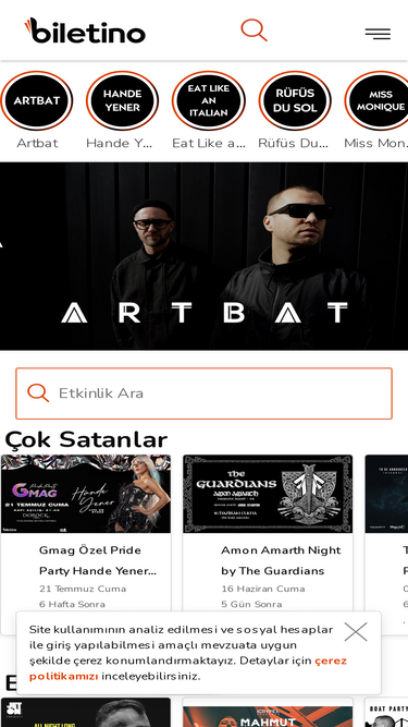 92%Biletino kullanıcıların etkinlik arayabildiği ve kendi etkinliklerini satabildiği bir bilet satış sitesidir.