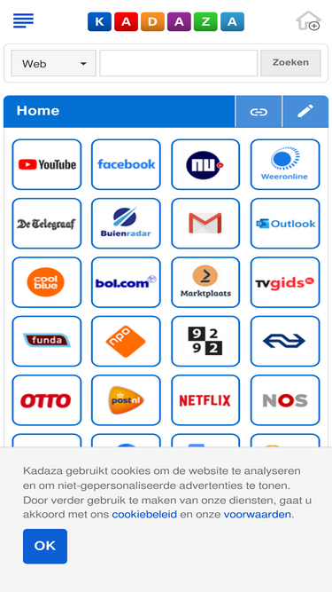 78%Nederlandse startpagina. Biedt een duidelijk overzicht van de meest gebruikte websites en links van Nederland. Maak ook eenvoudig een persoonlijke startpagina.