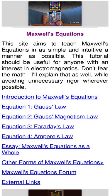 92%maxwell's equations are presented in this tutorial. gauss's law, faraday's law, the non-existance of magnetic charge, and ampere's law are described in an intuitive method, with a focus on understanding above mathematics.