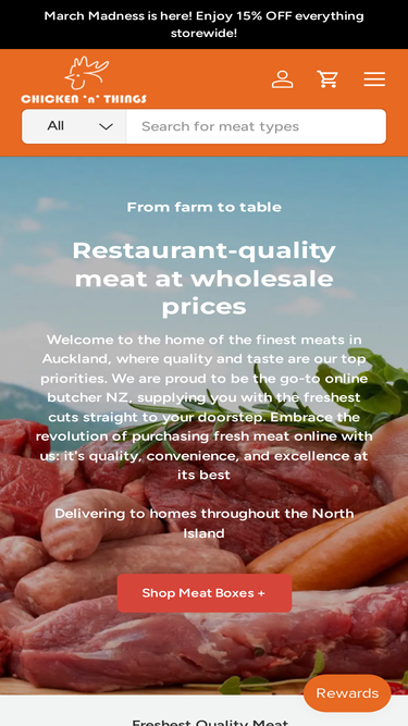 56%Chicken n Things is your trusted online butcher delivering fresh meat, organic cuts, meat boxes, sausages and smallgoods across New Zealand. Buy meat online today and enjoy fast, chilled NZ meat delivery right to your door.
