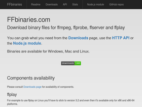 98%download binaries for ffmpeg, ffprobe, ffserver and ffplay (windows, mac, linux)