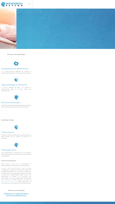 73%ressource-psyco.com propose différents articles répartis en diverses rubriques : apprentissage mémoire, comportement alimentaire, psychanalyse et enfant…
