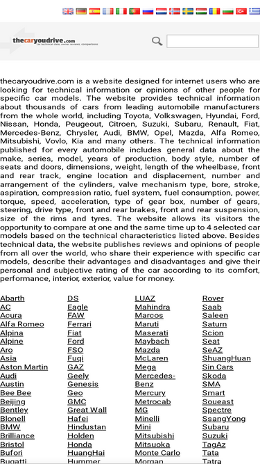 thecaryoudrive.com provides information about the technical specifications of thousands of car models from various car manufacturers. read owner reviews and compare the technical details of different car models. rate the car you drive and share your experience with other people.
