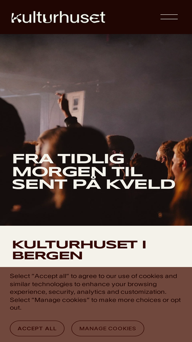 92%Kulturhuset i Bergen tilbyr kultur, mat, musikk og møter. En sentral møteplass med varierte arrangementer og fleksible lokaler.
