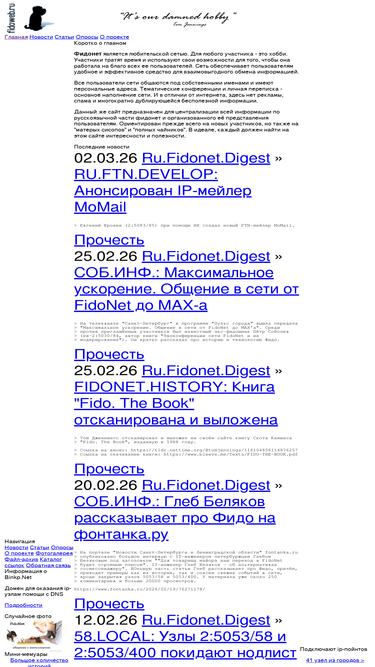 94%русскоязычное представительство сети фидонет (fidonet) в интернете. подключение к сети через интернет. мировой ноделист. новости фидо.