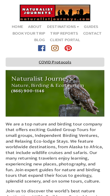 100%naturalist journeys is a top nature and birding tour company offering guided group tours worldwide. visit our website for destinations! great for small groups, independent birding ventures, and relaxing eco-lodge stays.