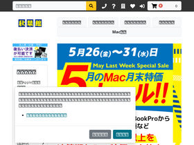 85%秋葉原で30年以上続くApple関連製品の専門店です。平日14時までのご注文は当日中に発送!各種決済に対応しています。Mac中古本体をはじめ、Mac用の周辺機器も豊富に取り揃えております。Macのハードウェアや周辺機器に関するお困りごとがありましたら、どうぞお気軽にご相談ください!Macを買うなら秋葉館!Mac用周辺機器を買うなら秋葉館!