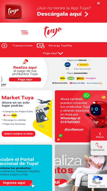 70%Desde nuestra app móvil hasta tarjetas de crédito y ofertas exclusivas, Tuya está aquí para ayudarte. Conoce más.
