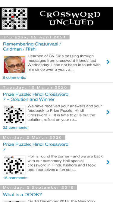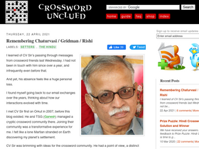 I learned of CV Sir’s passing through messages from crossword friends last Wednesday. I had not been in touch with him since over a year, a...