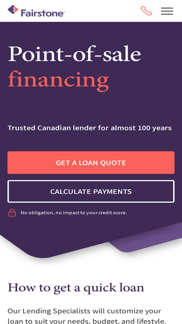 100%With a nearly 100-year legacy in Canada, Fairstone offers quick personal loans and mortgages to near-prime customers online and in 250 branches coast to coast.