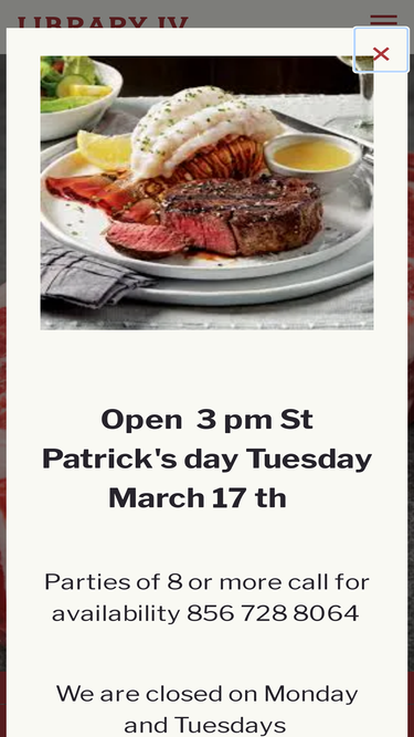 90%Library IV located in Williamstown, New Jersey offers quality prepared food and friendly service. We serve hand-cut steaks by the ounce, prime rib, seafood, veal and chicken.