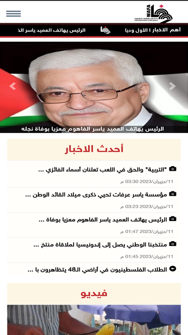 74%وكالة الأنباء الرسمية الفلسطينية، الأخبار السياسية والاقتصادية والثقافية والفنية، صور من فلسطين، فيديو من فلسطين والقدس أخبار اللاجئين الفلسطينيين في مخيمات الشتات، المسجد الأقصى والمسجد الإبراهيمي وكنيسية القيامة وكنيسة المهد، أخبار الاستيطان واعتداءات الاحتلال، شهداء فلسطين، الأسرى الفلسطينيون في سجون الاحتلال