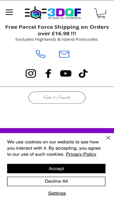 79%Finally, another White joins the 3DQF Parts, Polar White is a super bright white with a touch of Blue ! works well for snow effects with that slight Ice-blue undertone. Really nice to have the contract between our Titanium white which is a warmer cream in comparison. Available in PLA in 1.75 mm Spec 	Material PLA filament	Diameter 1.75mm + or - 0.03mm	Filament weight 1 KG gross	Hotend temp 210 - 225°C (between 60-120mm/s print speed)	Bed temperature 40-50°C or unheated	High-speed printing guide availableSpool Spec	69mm W	194 mm D	70 mm Axle 	Card Construction	Airtight Bag with desiccant AMS, Dry Box & Roller unloader user please use MK19 Edge ProtectorsLink