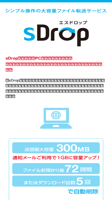 85%ブラウザにドラッグ&ドロップするだけで簡単に送ることができる、無料のネットサービスです。