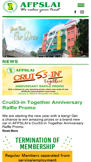 99%armed forces and police savings and loans association, inc. afpslai is a private, non-stock and non-profit savings and loan association established and registered with the securities and exchange commission (sec) in 1972