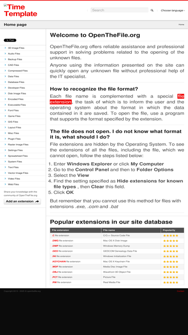 the site includes a database of file extensions segregated by categories. you will find here the software to support all known file formats.