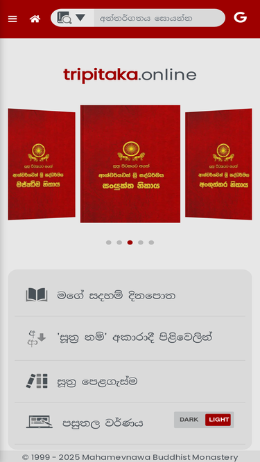 100%අතිපූජ්ය කිරිබත්ගොඩ ඤාණානන්ද ස්වාමීන් වහන්සේ විසින් සිංහලට පරිවර්තනය කරන ලද සූත්ර පිටකය සඳහා වූ අන්තර්ජාල ප්රවේශය