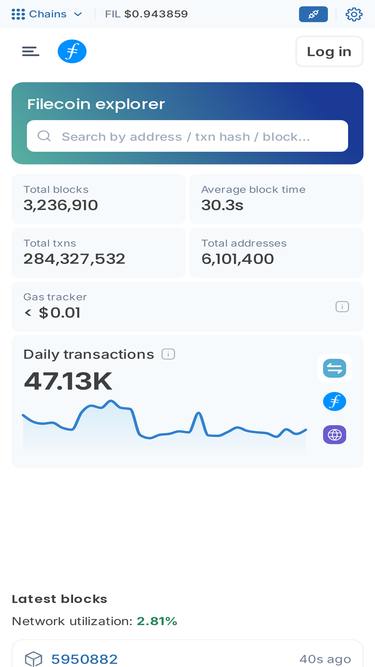 Filscan is a blockchain explorer that serves as a fundamental tool for the Filecoin ecosystem, providing real-time on-chain data. It enables users to query information about Filecoin's blockchain, transactions, FIL tokens, wallets, etc., and synchronizes real-time information from all nodes.