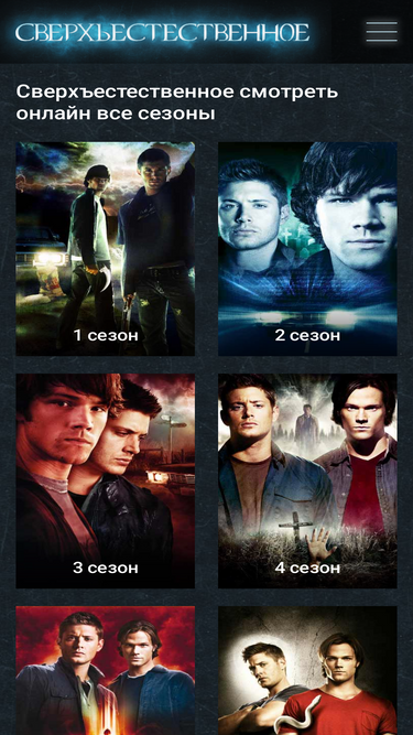 80%Смотрите все сезоны и серии сериала Сверхъестественное в свободном доступе на любых устройствах. Интересные опросы. Биографии актеров. Даты выхода серий.