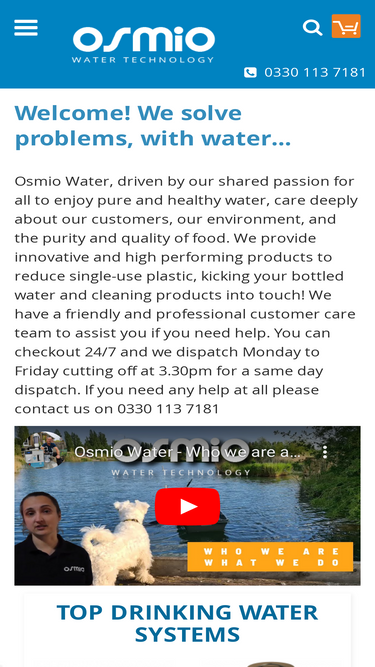100%osmio water are a water filter, water softener and private water supply treatment company providing product and installation solutions for the entire uk for homes, workplaces and more. we have the widest range of water quality products with high quality, certification and fast delivery.