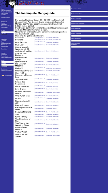 86%auf dieser seite werden alle mangas (d.h. comics aus japan) vorgestellt, die es in deutscher sprache gibt.