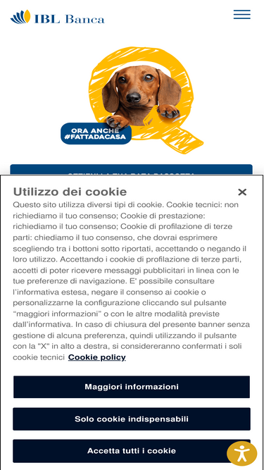 61%Scopri i servizi IBL Banca per privati e business: Apri subito il tuo conto corrente online per usufruire di servizi come la Cessione del Quinto e prestiti personali.