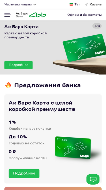 87%дебетовые и кредитные карты, потребительские кредиты, ипотека, вклады, инвестиции, платежи и переводы, страхование, онлайн-банкинг и другие услуги для частных лиц и самозанятых в ак барс банке.