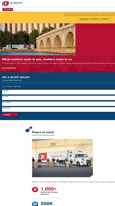 76%JK Moving Services is North America’s largest independent mover. Trust us for residential or commercial moves. Get a free quote!