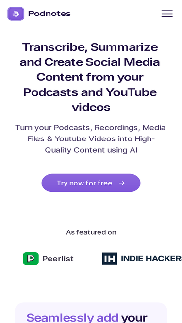 82%Podnotes - Grow your Audience by repurposing your Podcasts. Convert your Podcasts, Audio Files & Videos into Transcripts, Summaries, Blogs, Social Media Posts, and Audiograms in 19+ languages powered by AI