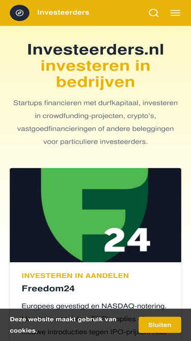 67%Investeerders.nl is een zakelijke uitgave van de Nederlandse internetuitgeverij Eurolutions. Lees hierover verder op de over ons-pagina. Op onze sites gebruiken we cookies, die invloed kunnen hebben op jouw online privacy. Lees hier waarom wij dat doen en welke invloed deze hebben. Wat doen wij met jouw data? We gebruiken…