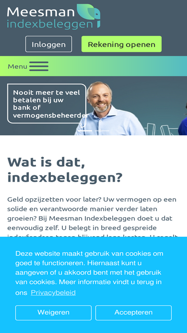 100%Steeds meer klanten maken gebruik van de voordelen van indexbeleggen bij Meesman. Daarom zijn wij altijd op zoek naar nieuwe collega's. Kom jij ons team versterken?