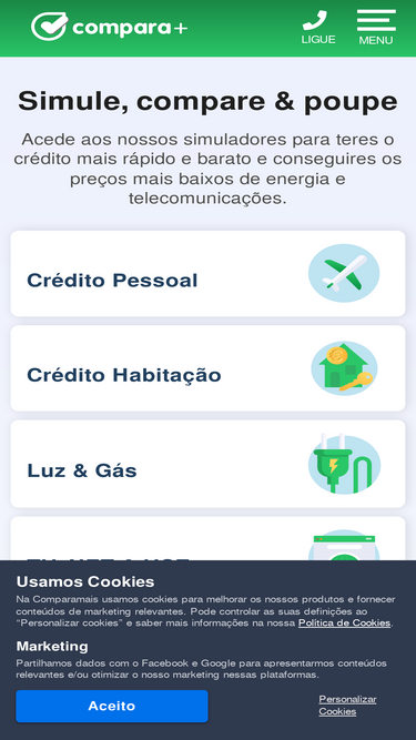 76%Comparamais.pt é um site de comparação de produtos financeiros em Portugal. Compare crédito pessoal, crédito habitação, cartões de crédito, luz e gás, telemóveis e TV, Net e Voz.