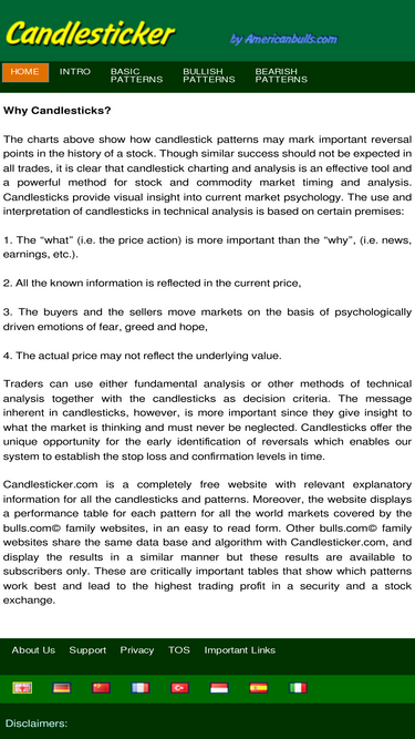 81%candlesticker is a website about japanese candlesticks, where candlestick patterns are thoroughly explained. you can also find live samples and information about the historical performance of each and every pattern on the world stock exchanges.
