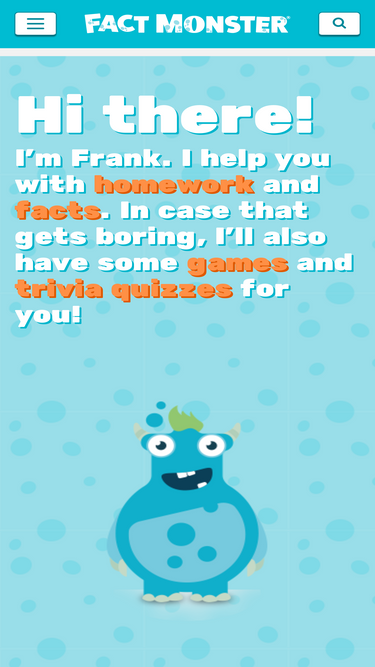 76%fact monster is a free reference site for students, teachers, and parents. get homework help and find facts on thousands of subjects, including sports, entertainment, geography, history, biography, education, and health.
