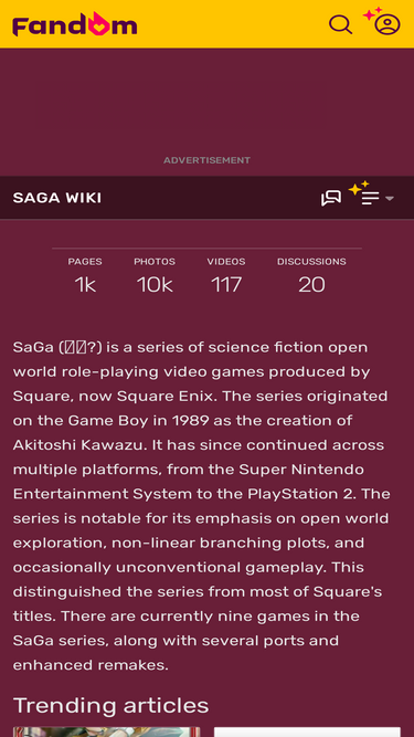 89%Emperors SaGa (エンペラーズ サガ) is a downloadable social game in the SaGa series from Square Enix. The game was released on the GREE platform on September 18, 2012. In Emperors SaGa, players take the role of the emperor of a nation, and guide the country as its ruler. The game features a combat system utilizing digital playing cards. The game itself is free, and players purchase packs of cards for the game with real money. Those cards represent allies that the player can use to battle enemies. The...