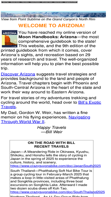 90%arizona's top travel sights plus hiking, author's world travels, and my father's navigating through wwii
