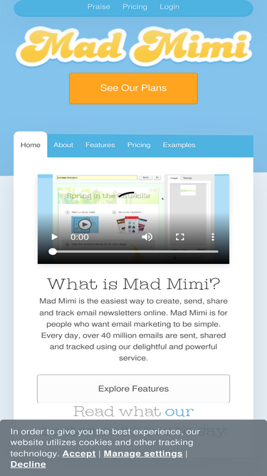 89%Mad Mimi semplifica l'invio di newsletter via email in formato HTML, l'ampliamento della base di iscritti e la gestione delle mailing list. Registrati oggi!