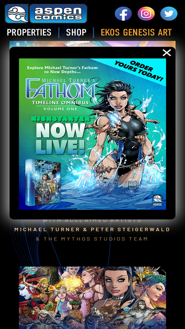 100%aspen comics is a comic book publishing company founded in 2003 by legendary creator and artist, michael turner and is home to properties including fathom, soulfire, the core, and ekos