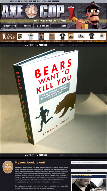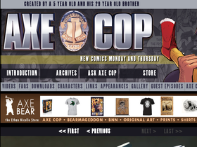 100%Axe Cop was born Axey Smartist in 2004 to his parents Bobber and Gobber Smartist. After his parents ate candy canes that were poisoned by Telescope Gun Cop he swore on their grave he would become a cop. At some point he decided an axe was a better weapon than a gun, and it turns out he was right. Axe Cop now regularly has try outs for various warriors and super heroes to join him as he fights evil. He only has two known weaknesses: Being surprised (which causes him to melt), and Cherry Rainbow candy canes. Powers: axe chop, Axe Cop with lemon, lemon grenades, retractable danger-sensing antennae, psychic attacks, poison food production, mustache has robot hands and secret weapons, super high jumps, hypnotize button in wrist